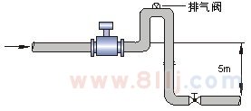 4、若管道落差超過5m時,在傳感器的下游安裝排氣閥;